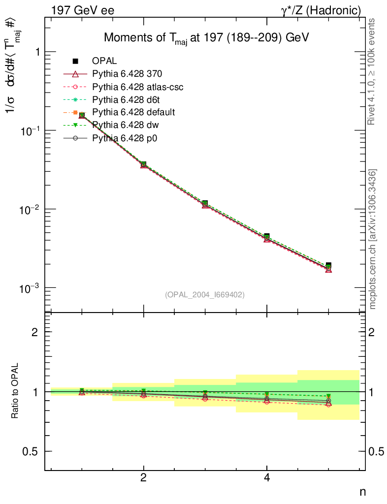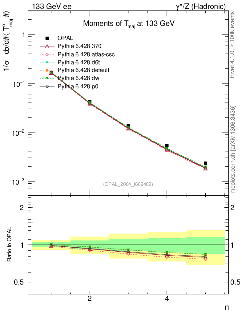 ee : γ*/Z (hadronic) : Event-Shape Moments : Moments of T Major