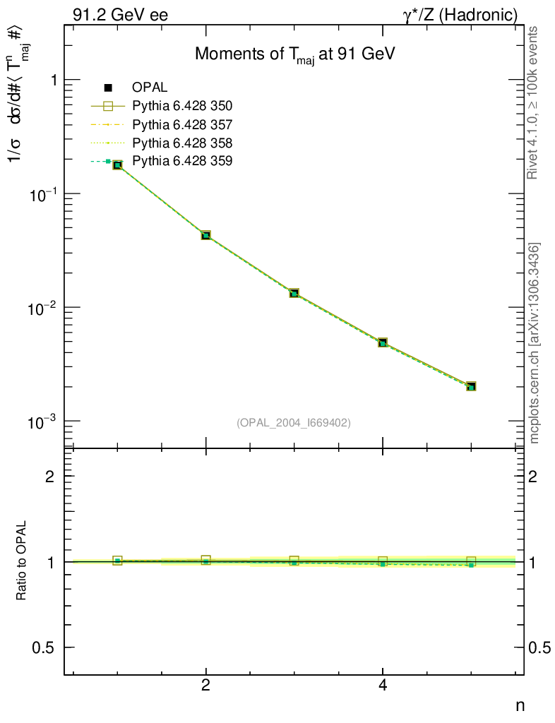 ee : γ*/Z (hadronic) : Event-Shape Moments : Moments of T Major