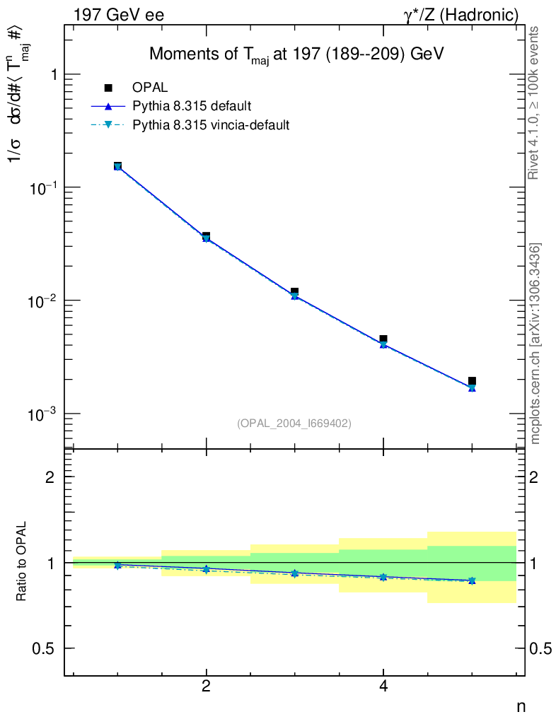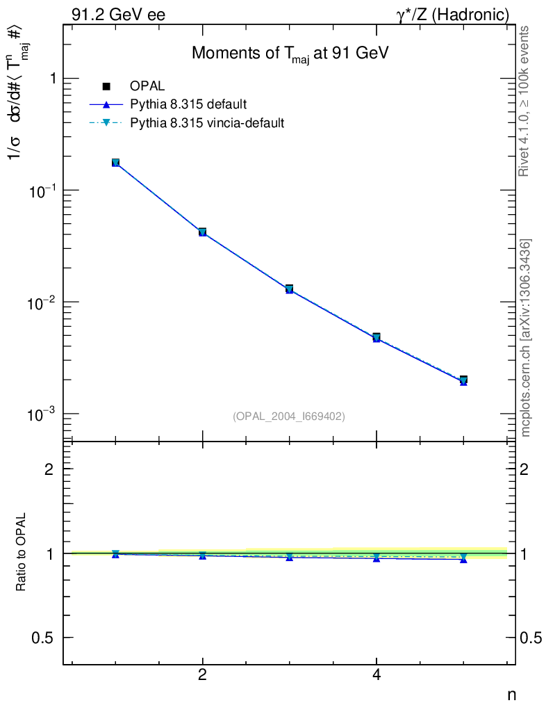 ee : γ*/Z (hadronic) : Event-Shape Moments : Moments of T Major
