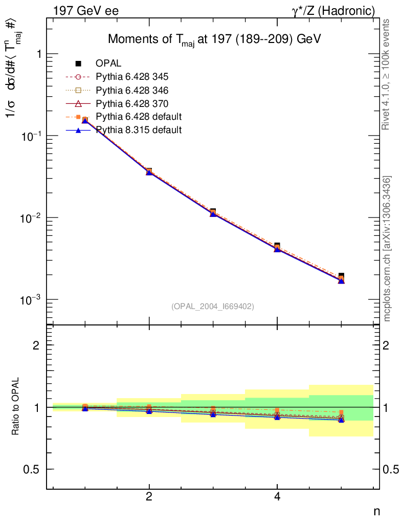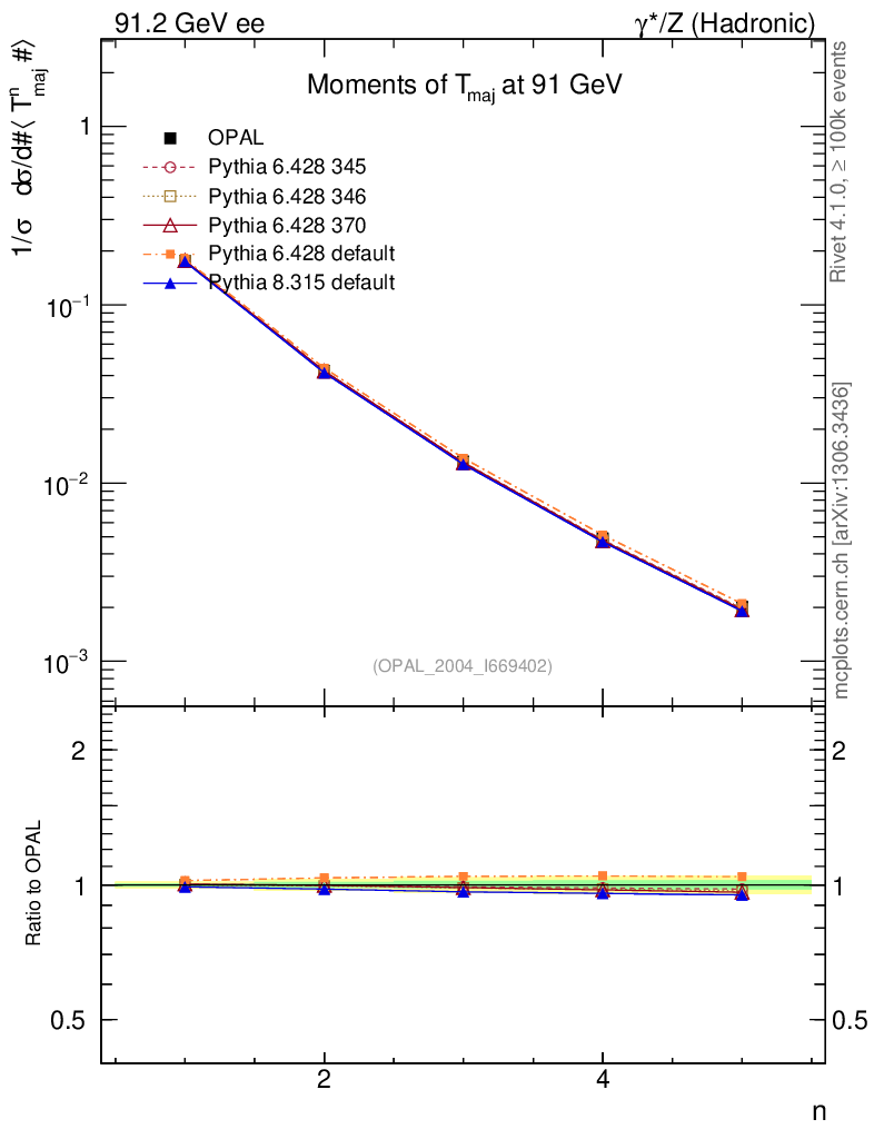 ee : γ*/Z (hadronic) : Event-Shape Moments : Moments of T Major