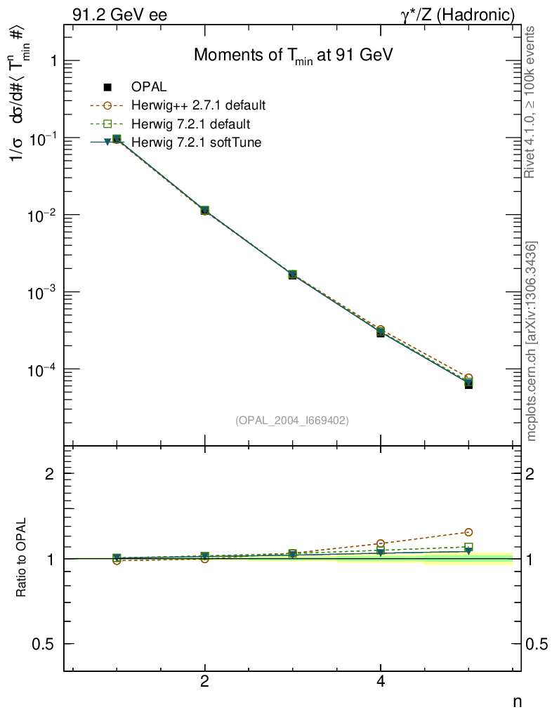 ee : γ*/Z (hadronic) : Event-Shape Moments : Moments of T Minor