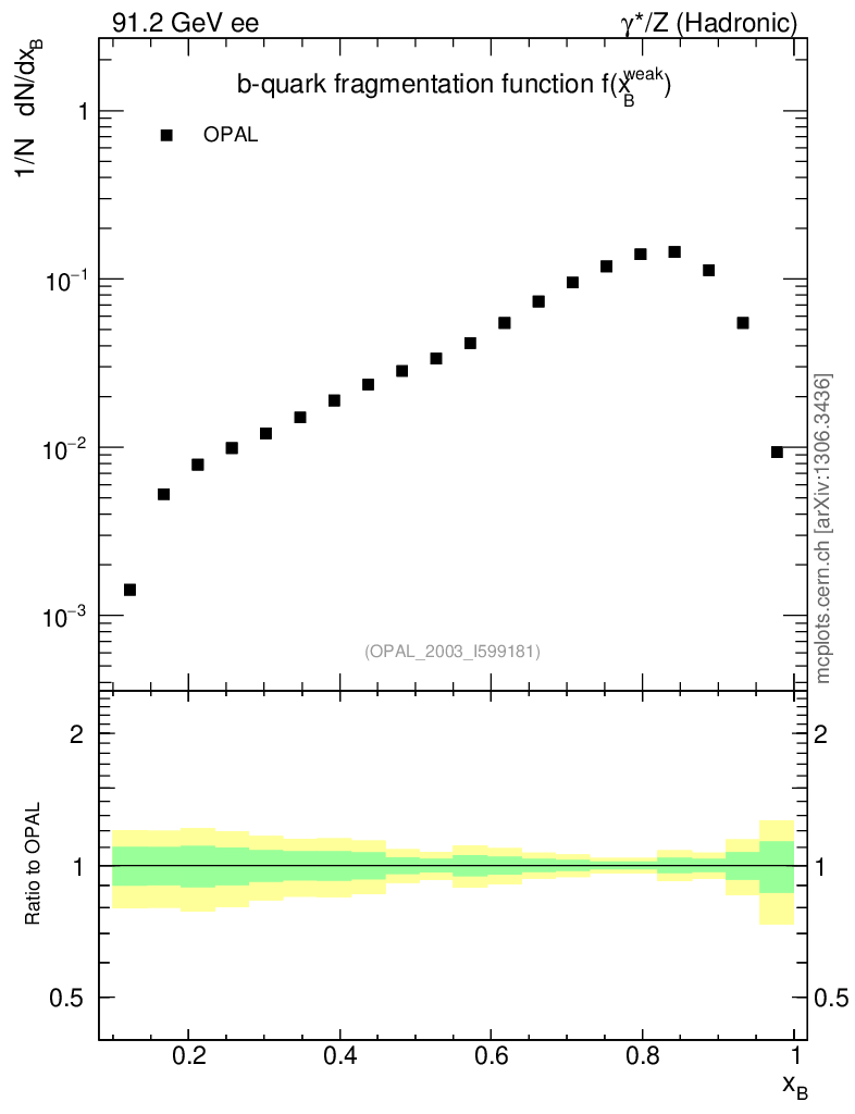 Plot of b-f-weak in 91.2 GeV ee collisions