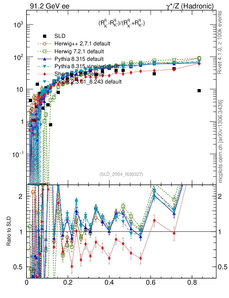 ee : γ*/Z (hadronic) : Identified Particles : (R
