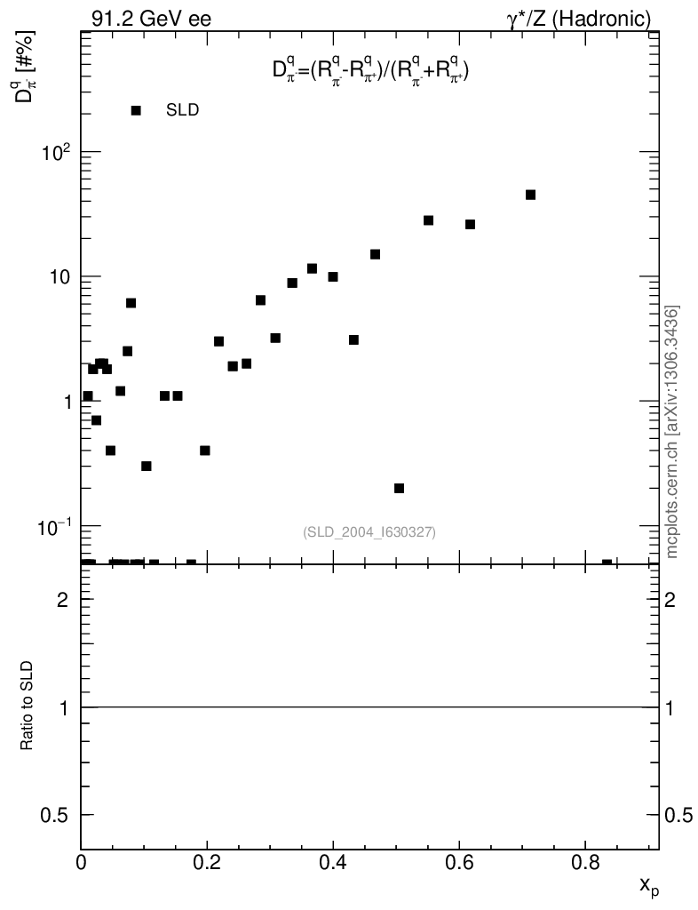 ee : γ*/Z (hadronic) : Identified Particles : (Rqπ--Rqπ+) / (Rqπ-+Rqπ+)
