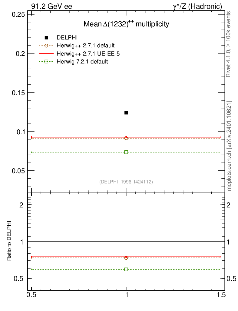 ee : γ*/Z (hadronic) : Identified Particles : Δ++ multiplicity