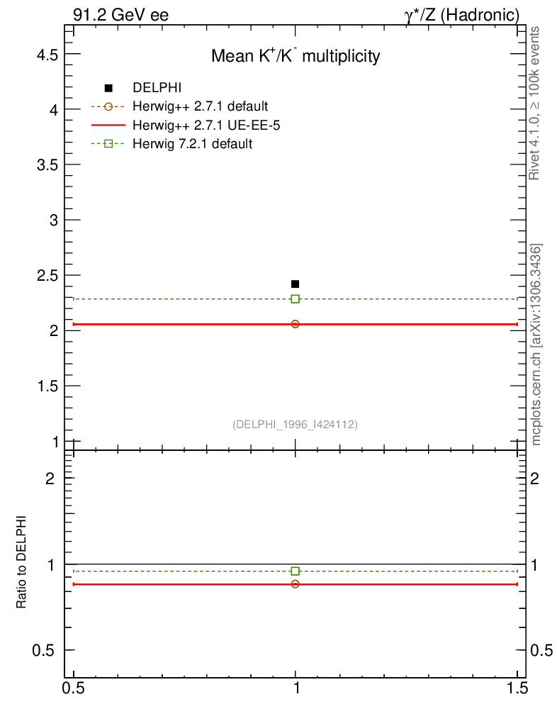 ee : γ*/Z (hadronic) : Identified Particles : K multiplicity