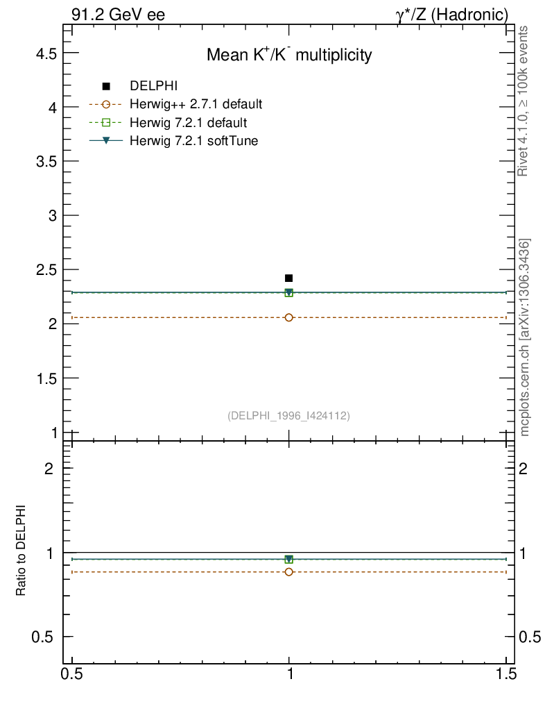 ee : γ*/Z (hadronic) : Identified Particles : K multiplicity