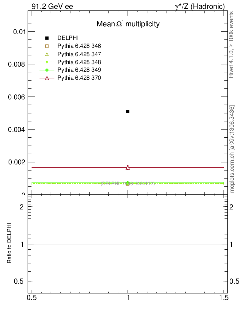 ee : γ*/Z (hadronic) : Identified Particles : Ω multiplicity