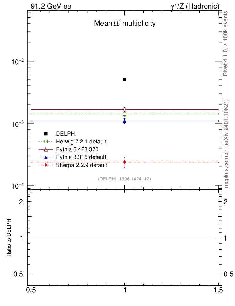 ee : γ*/Z (hadronic) : Identified Particles : Ω multiplicity