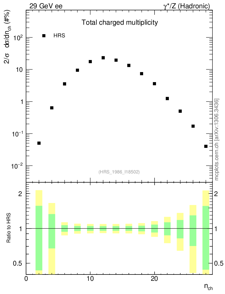 Plot of nch in 29 GeV ee collisions