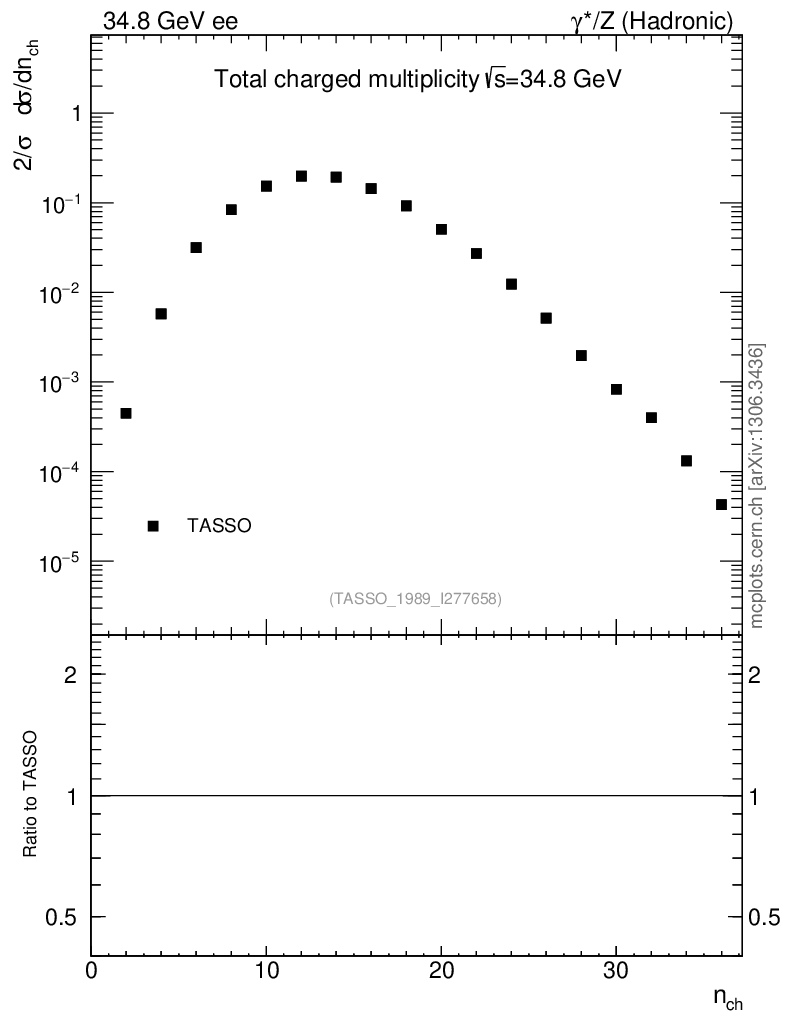 Plot of nch in 34.8 GeV ee collisions