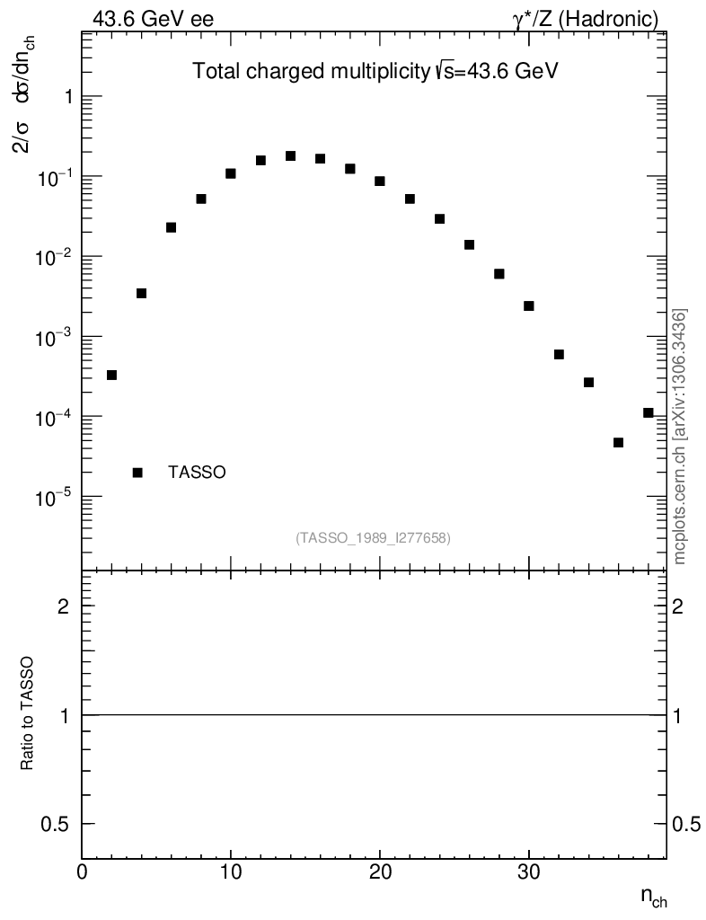 Plot of nch in 43.6 GeV ee collisions