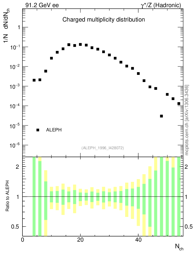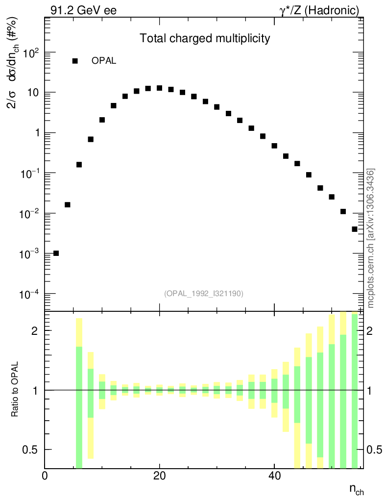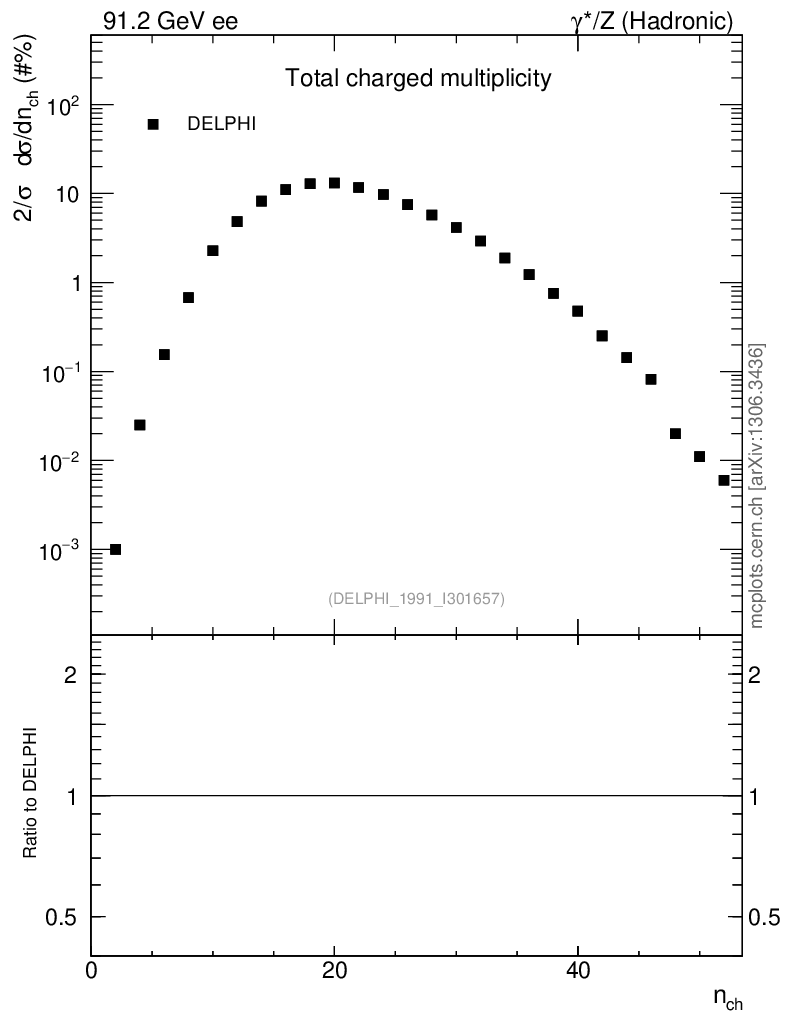 Plot of nch in 91.2 GeV ee collisions