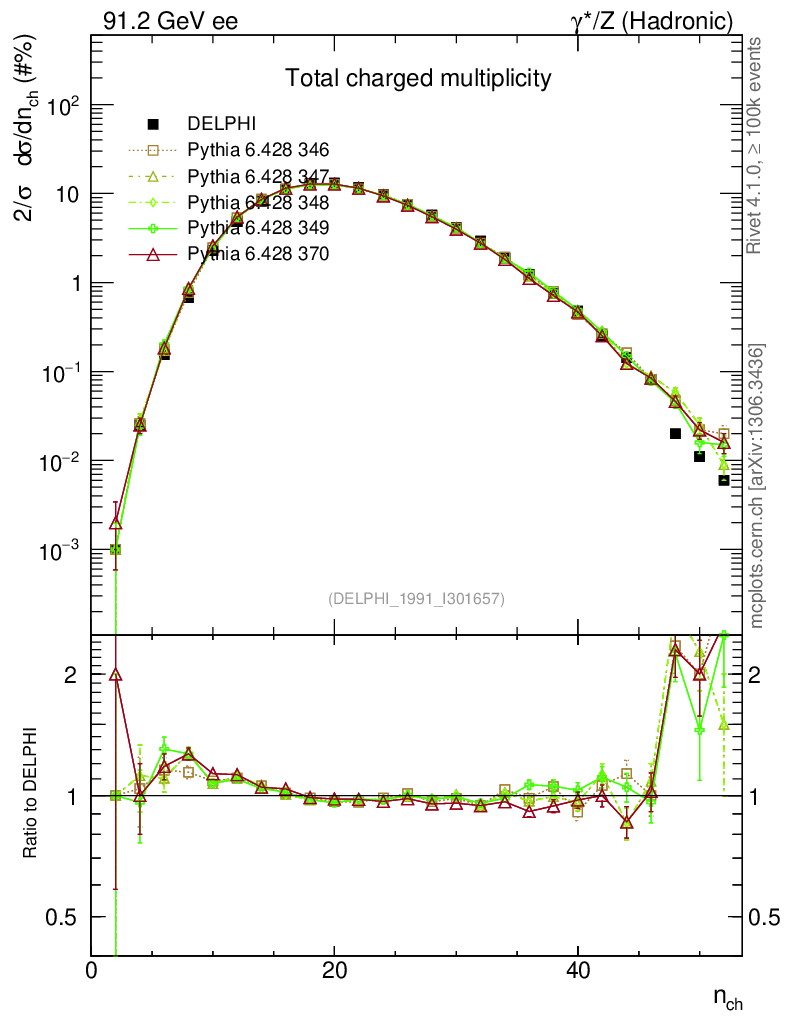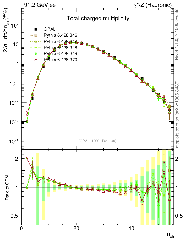 ee : γ*/Z (hadronic) : Charged Particles : Multiplicity Distribution