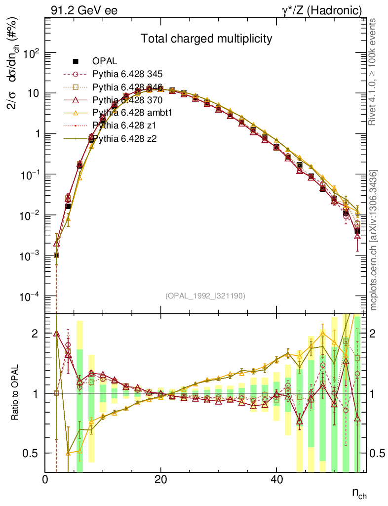 ee : γ*/Z (hadronic) : Charged Particles : Multiplicity Distribution