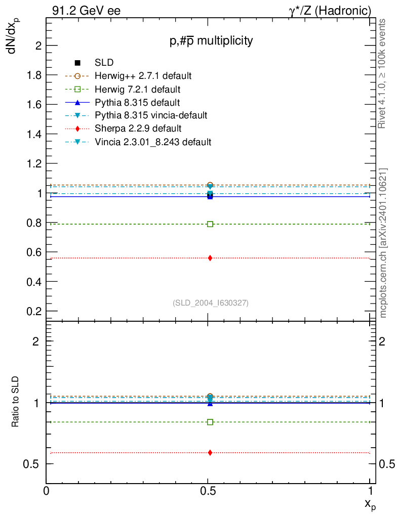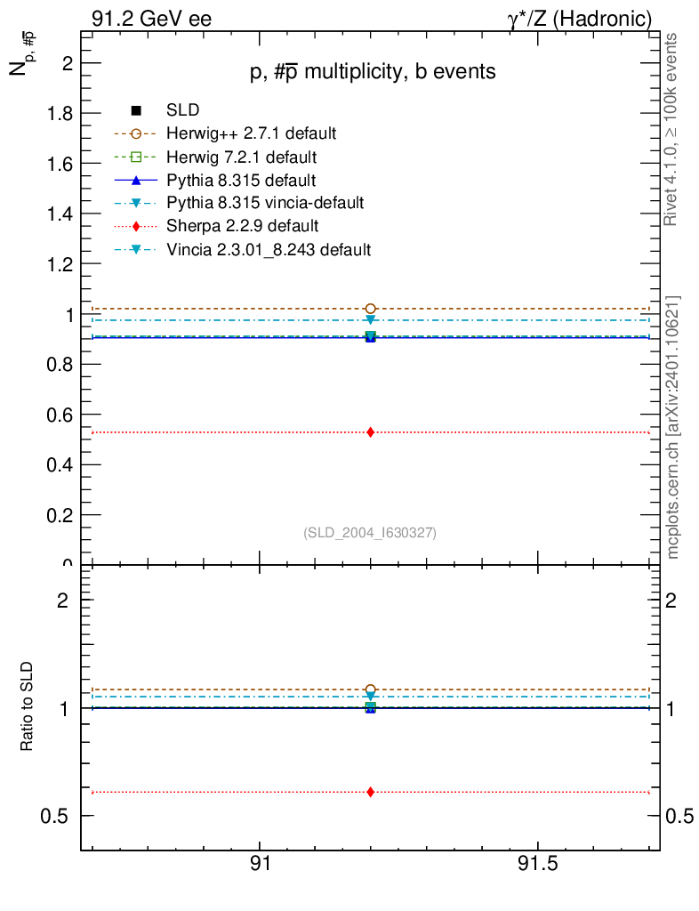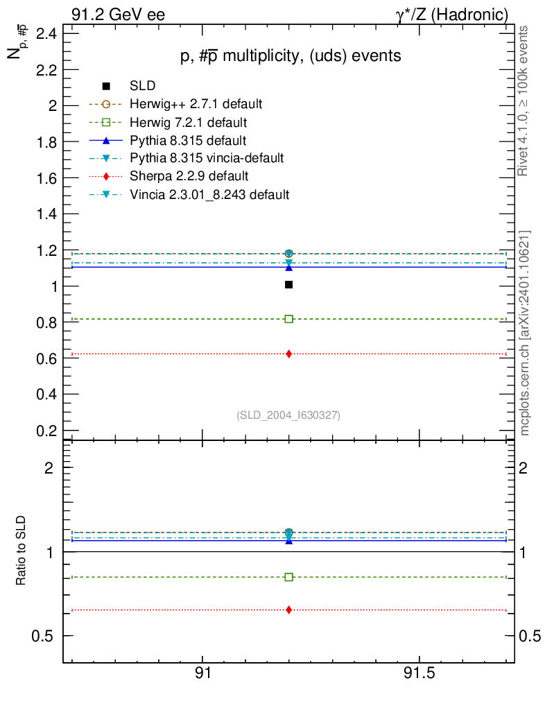 ee : γ*/Z (hadronic) : Identified Particles : p multiplicity