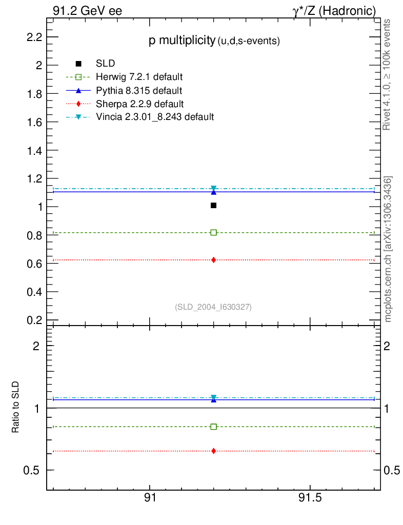 ee : γ*/Z (hadronic) : Identified Particles : p multiplicity