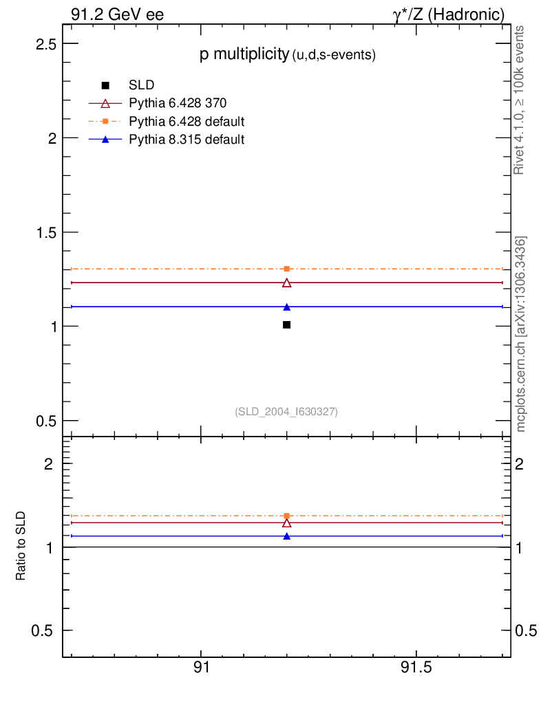 ee : γ*/Z (hadronic) : Identified Particles : p multiplicity