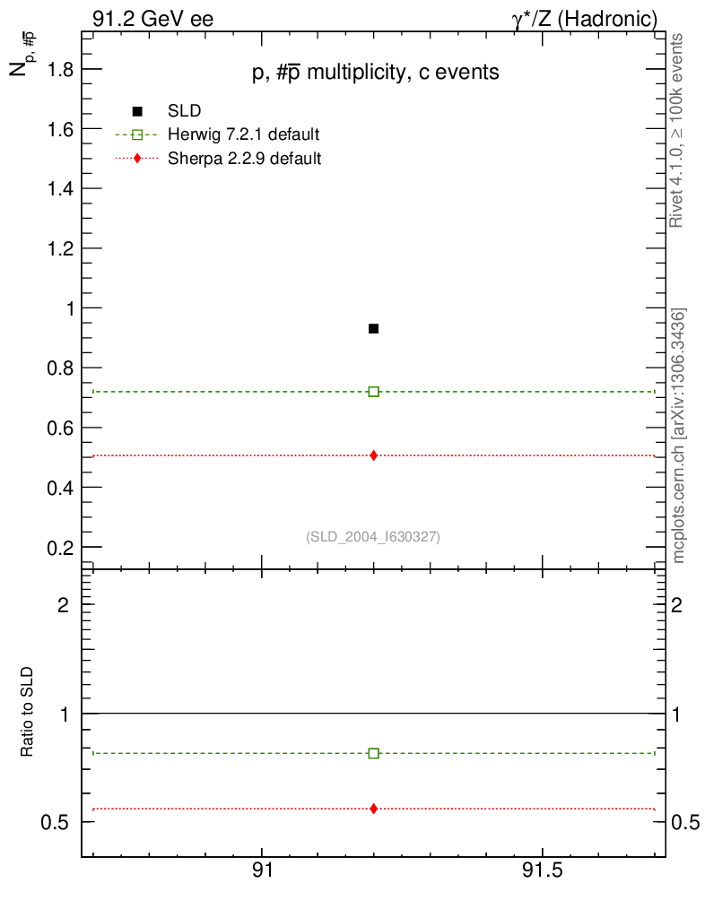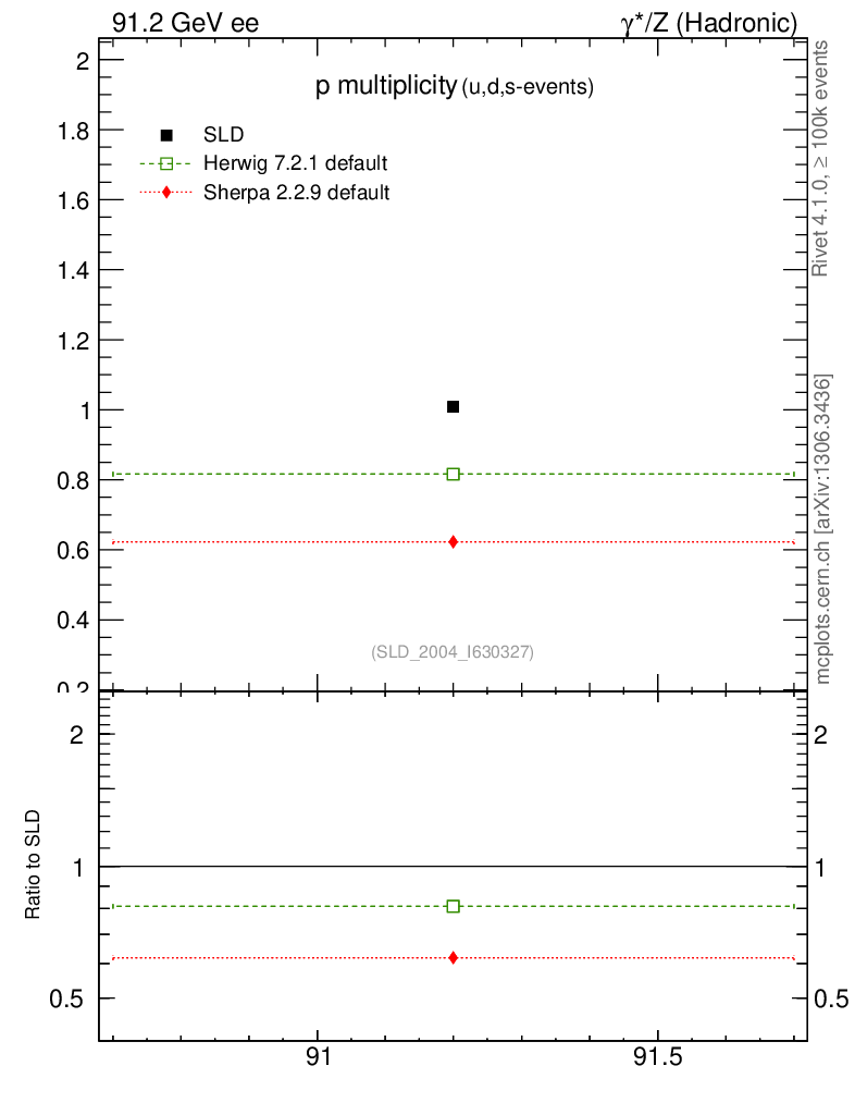 ee : γ*/Z (hadronic) : Identified Particles : p multiplicity