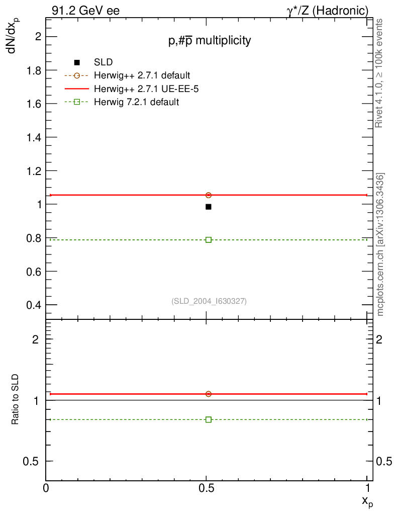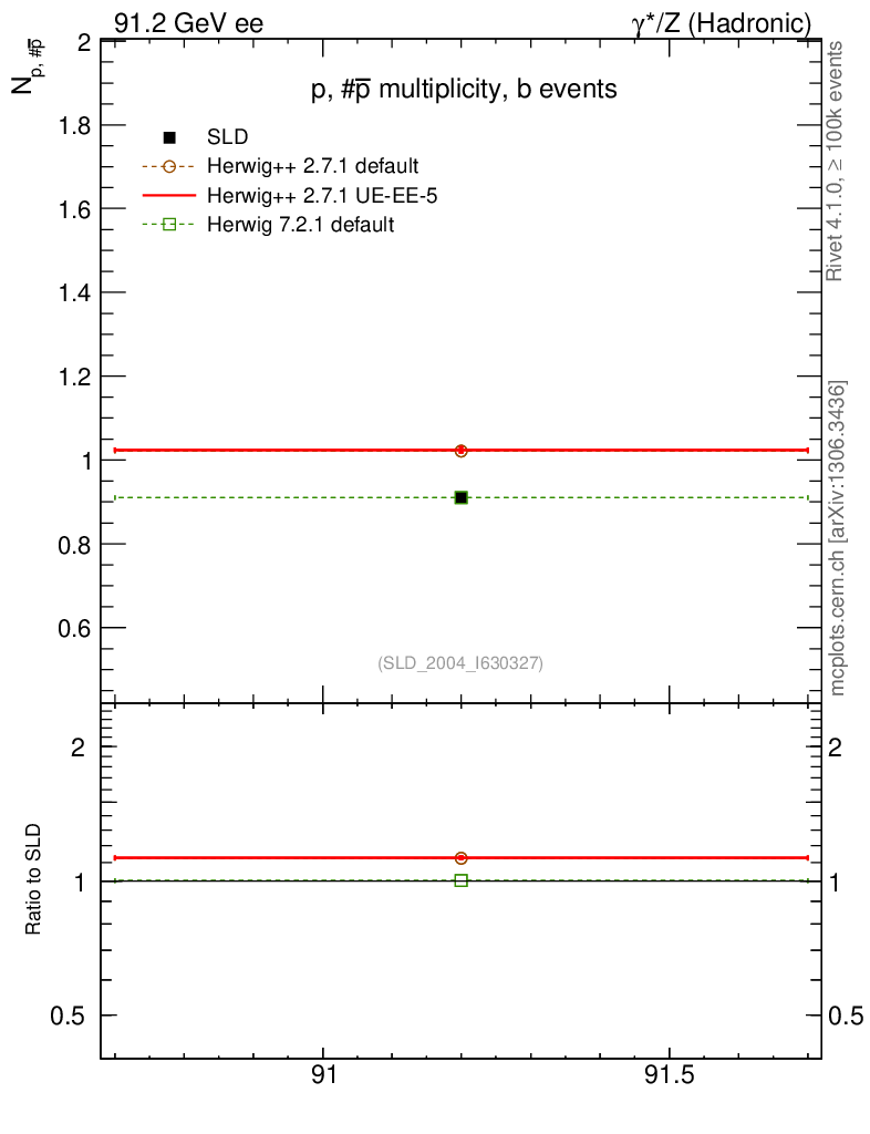 ee : γ*/Z (hadronic) : Identified Particles : p multiplicity