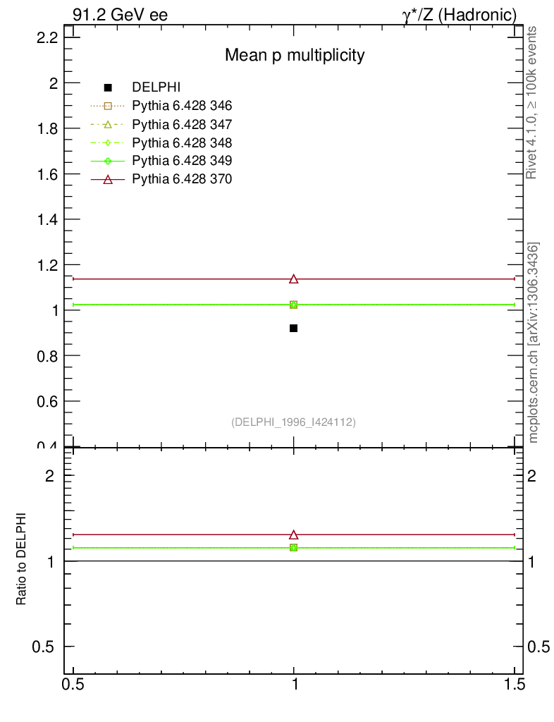 ee : γ*/Z (hadronic) : Identified Particles : p multiplicity