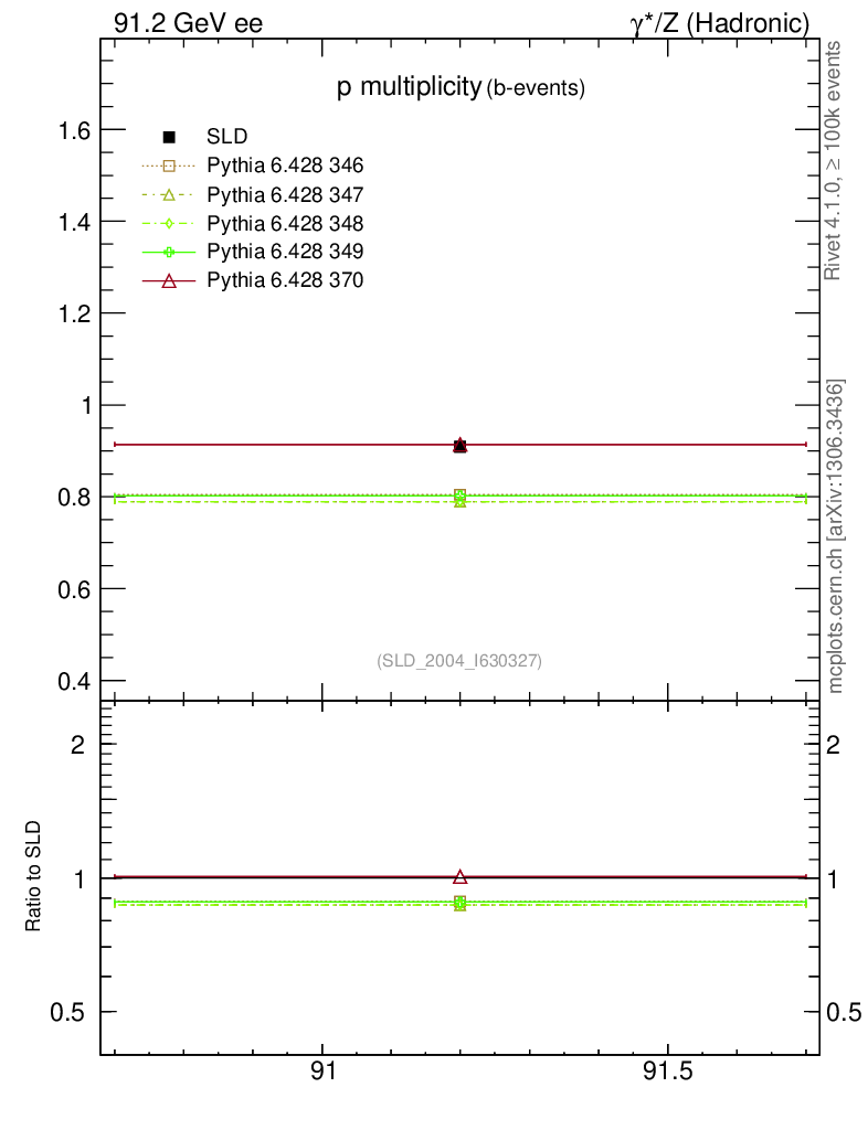 ee : γ*/Z (hadronic) : Identified Particles : p multiplicity