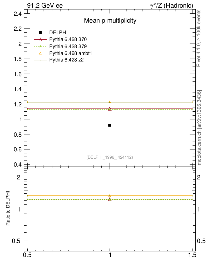 ee : γ*/Z (hadronic) : Identified Particles : p multiplicity