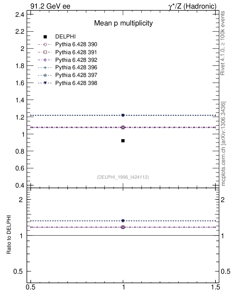 ee : γ*/Z (hadronic) : Identified Particles : p multiplicity