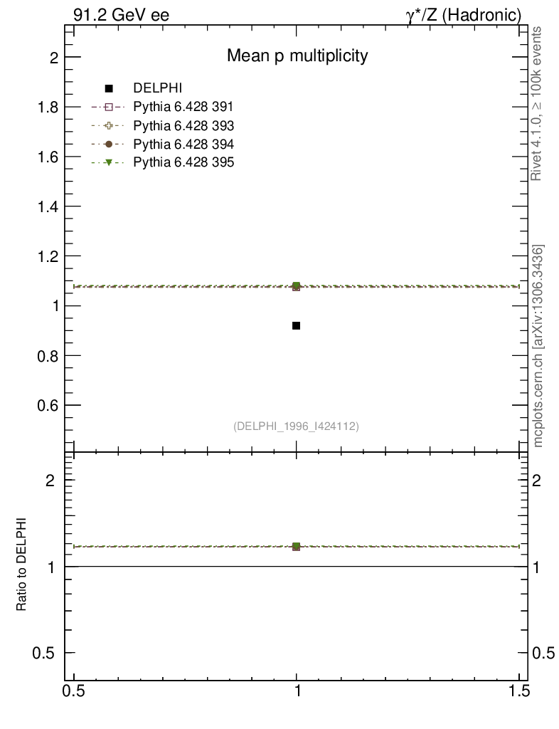 ee : γ*/Z (hadronic) : Identified Particles : p multiplicity