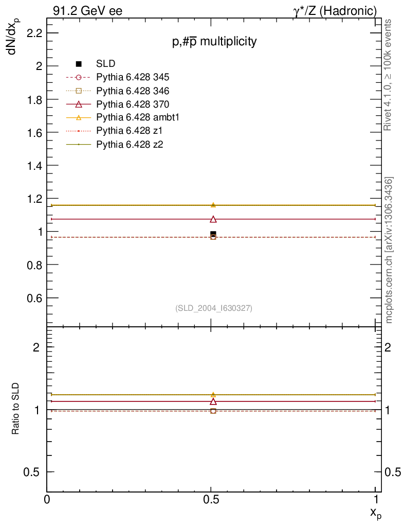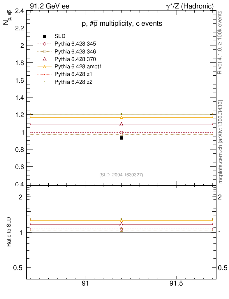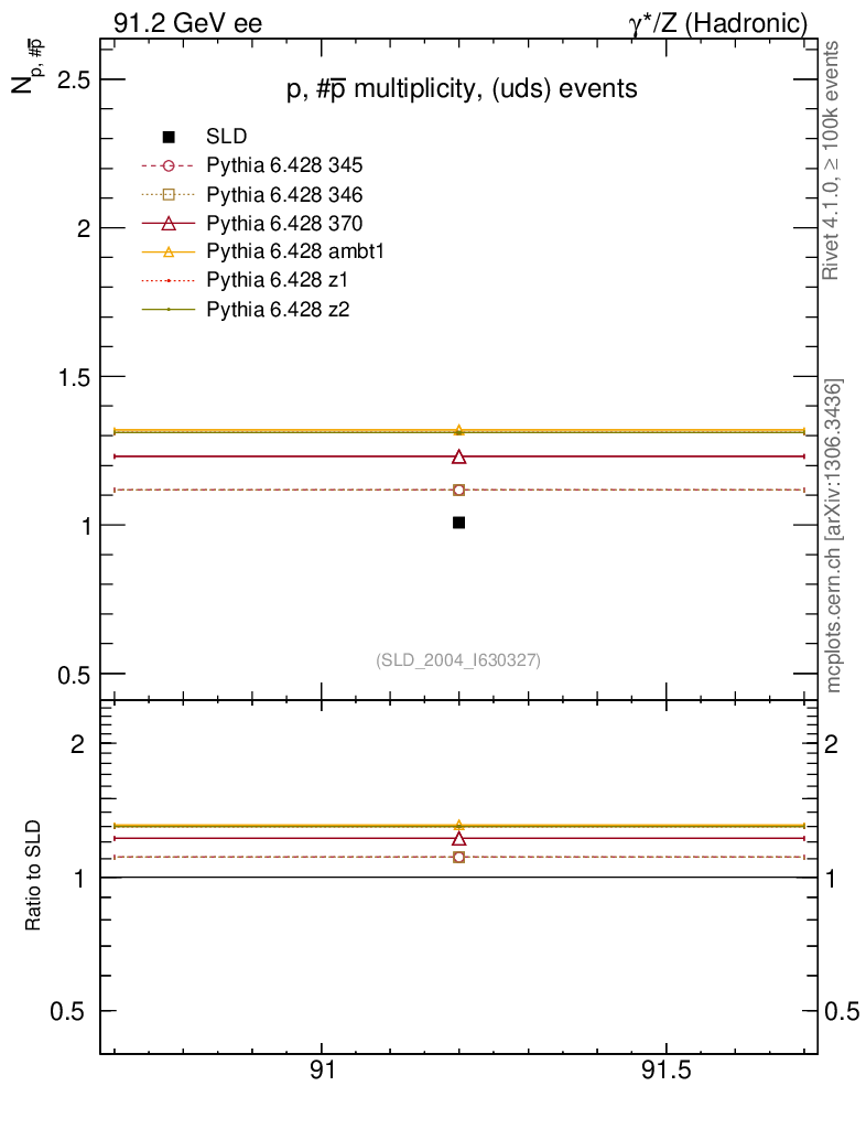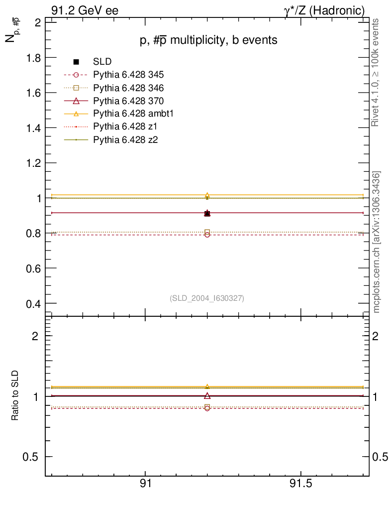 ee : γ*/Z (hadronic) : Identified Particles : p multiplicity
