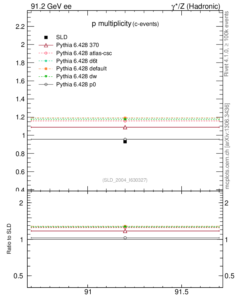 ee : γ*/Z (hadronic) : Identified Particles : p multiplicity