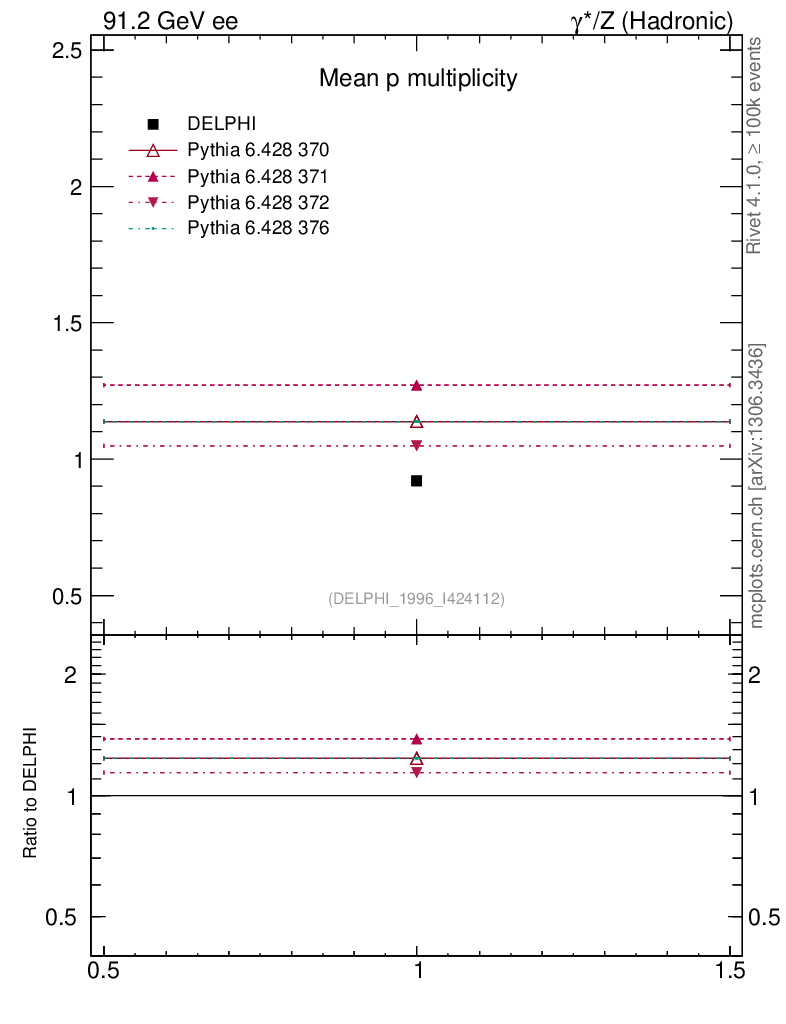 ee : γ*/Z (hadronic) : Identified Particles : p multiplicity