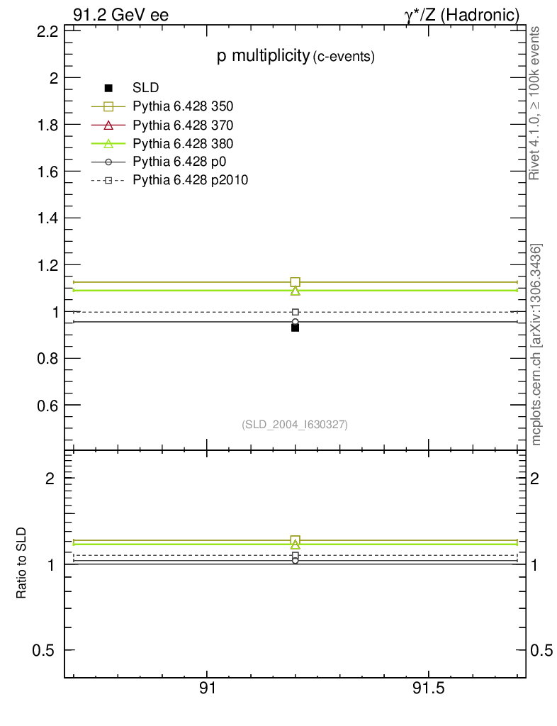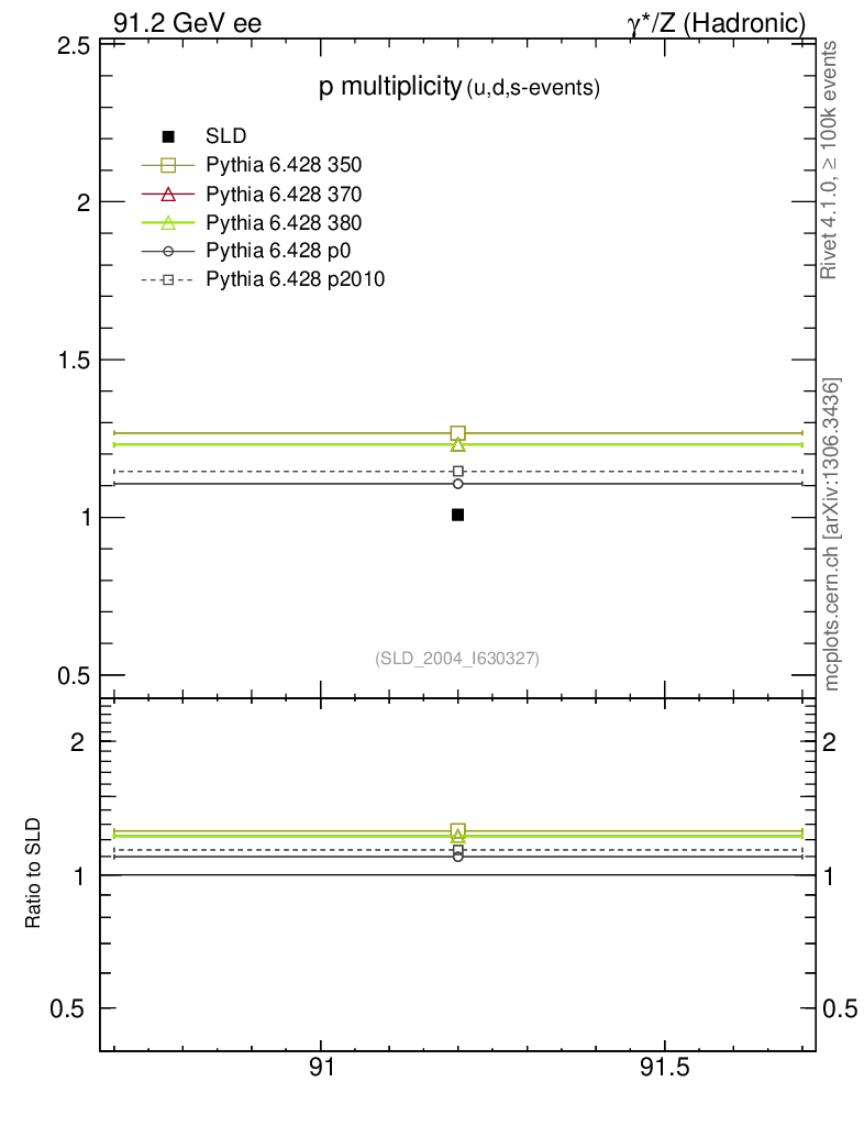 ee : γ*/Z (hadronic) : Identified Particles : p multiplicity