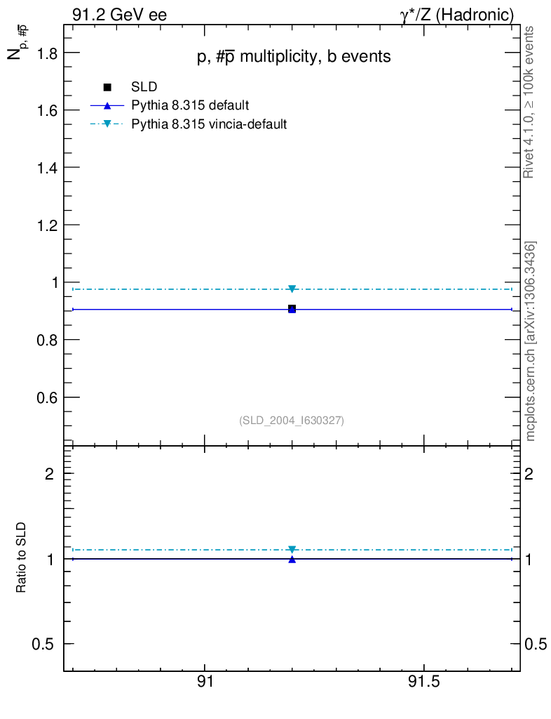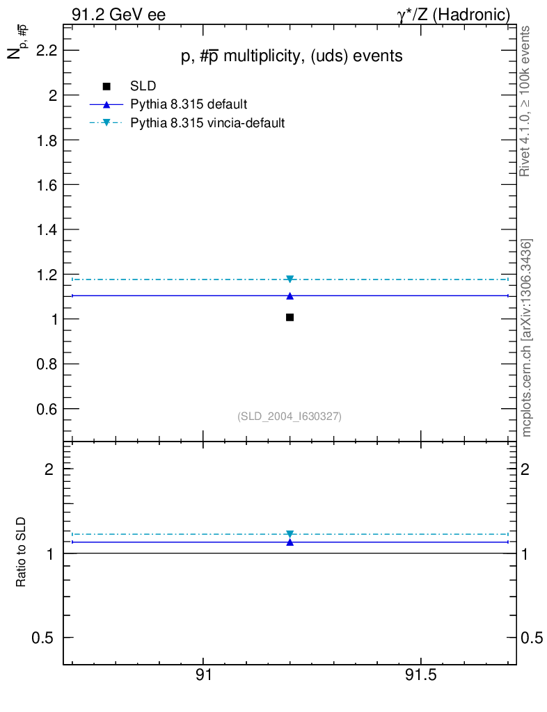 ee : γ*/Z (hadronic) : Identified Particles : p multiplicity