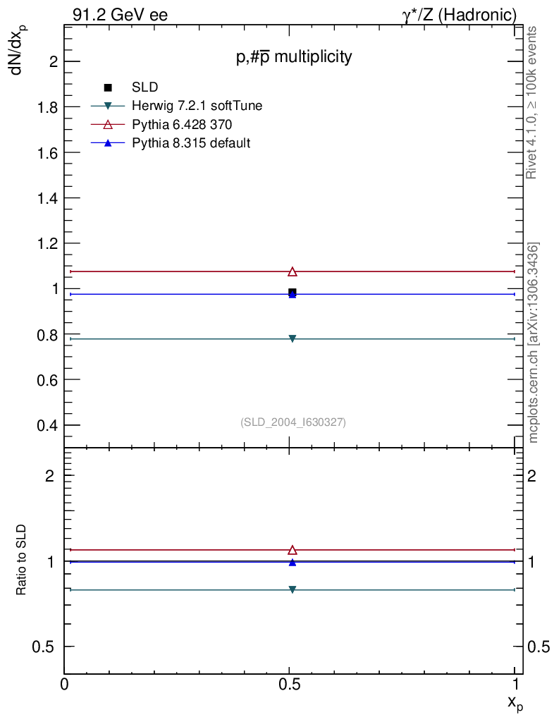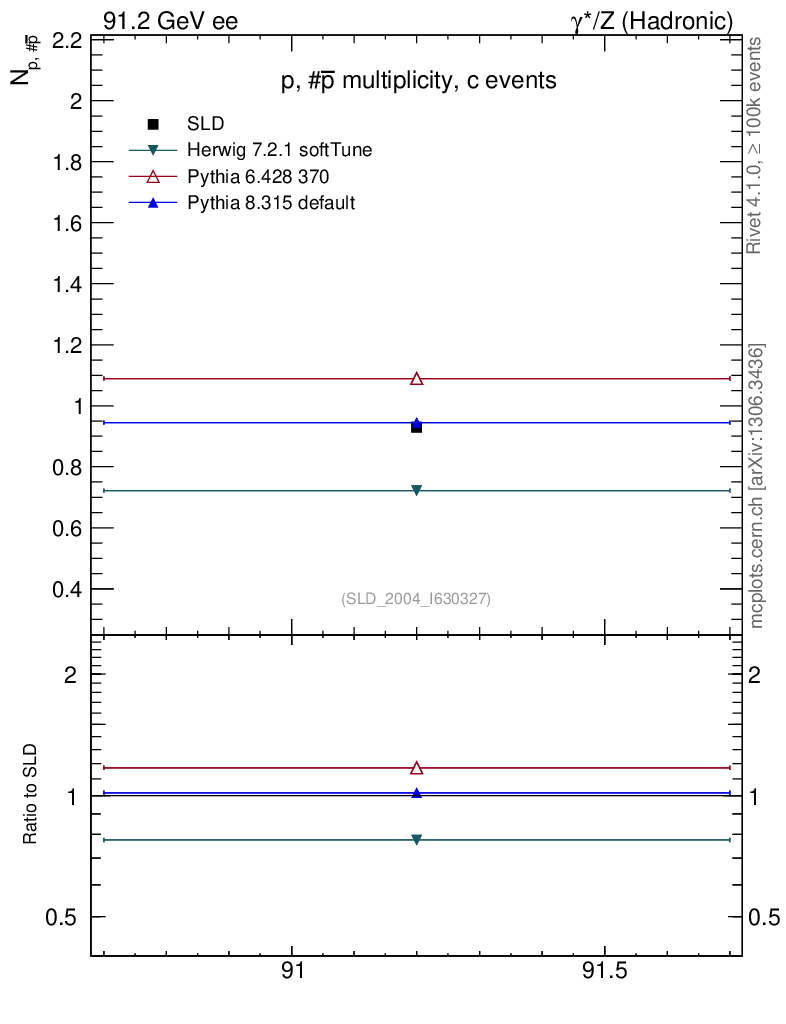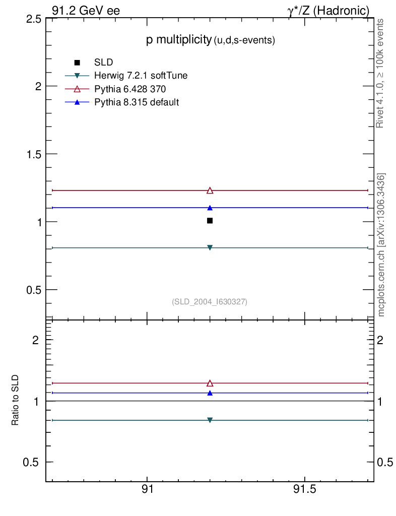 ee : γ*/Z (hadronic) : Identified Particles : p multiplicity