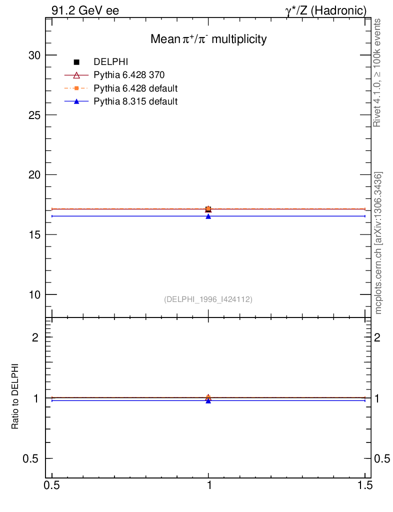 ee : γ*/Z (hadronic) : Identified Particles : π multiplicity