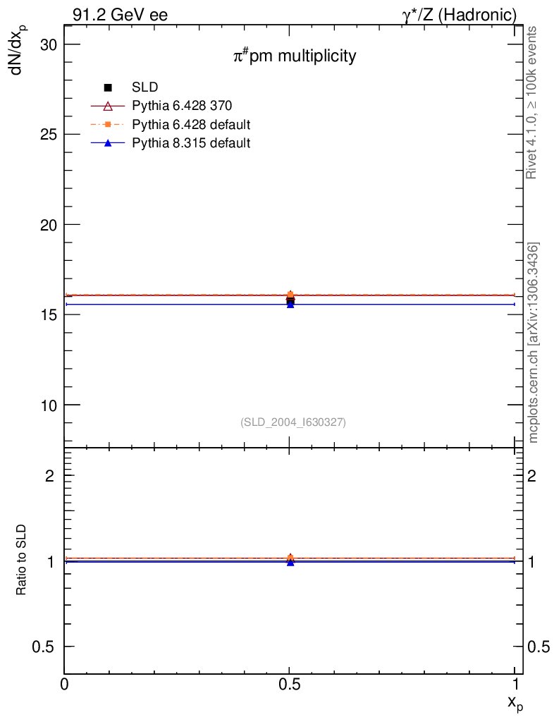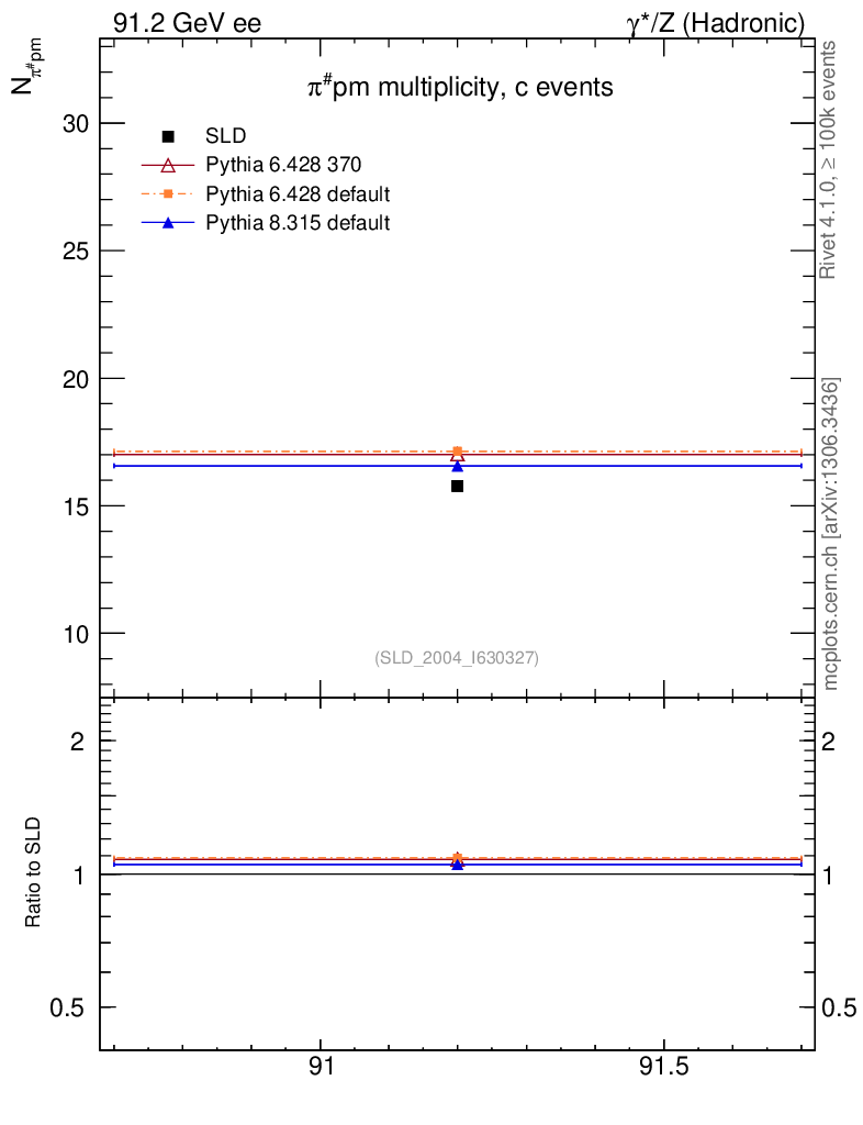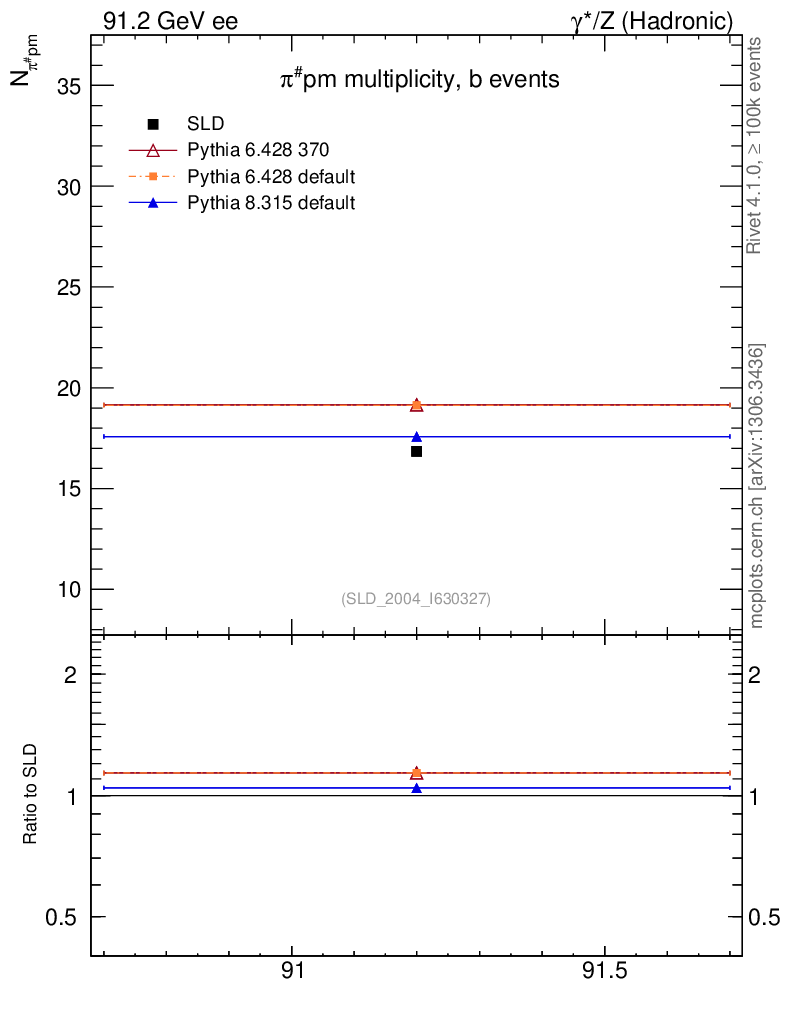 ee : γ*/Z (hadronic) : Identified Particles : π multiplicity