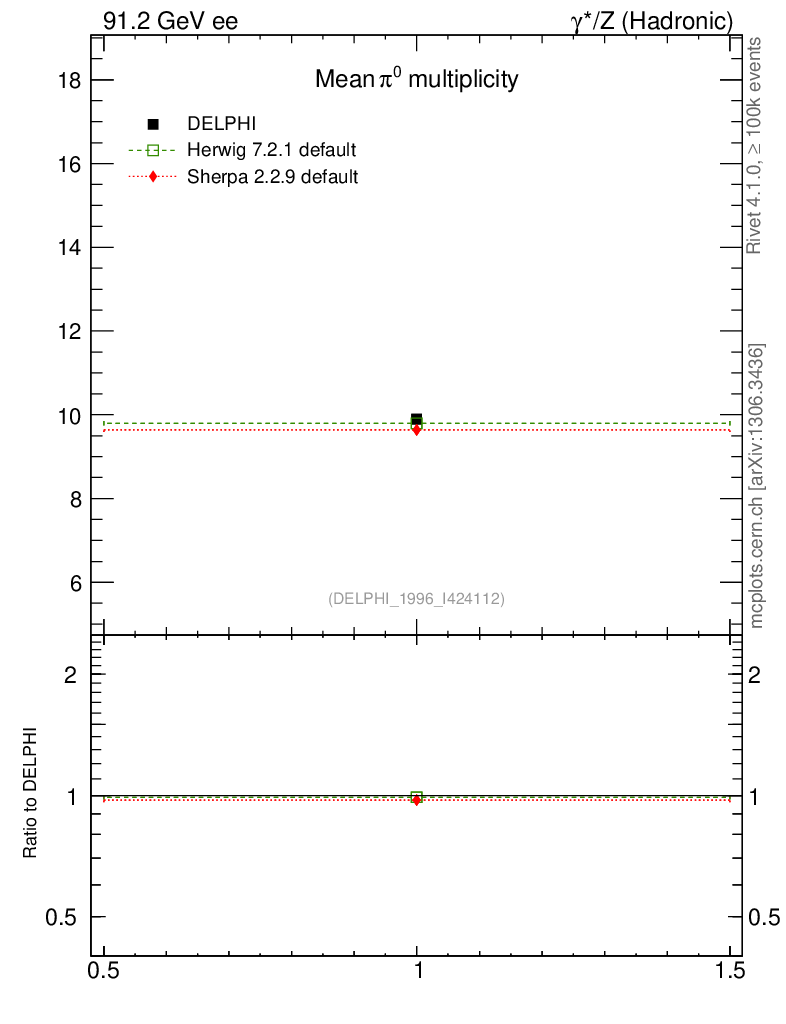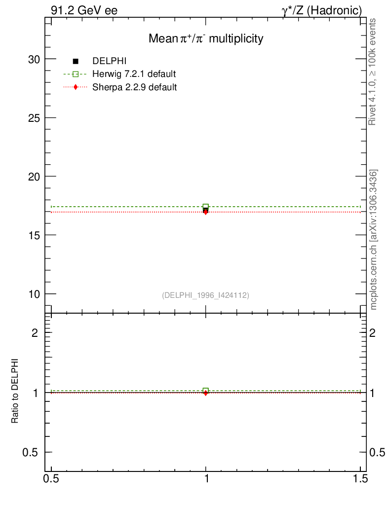 ee : γ*/Z (hadronic) : Identified Particles : π multiplicity