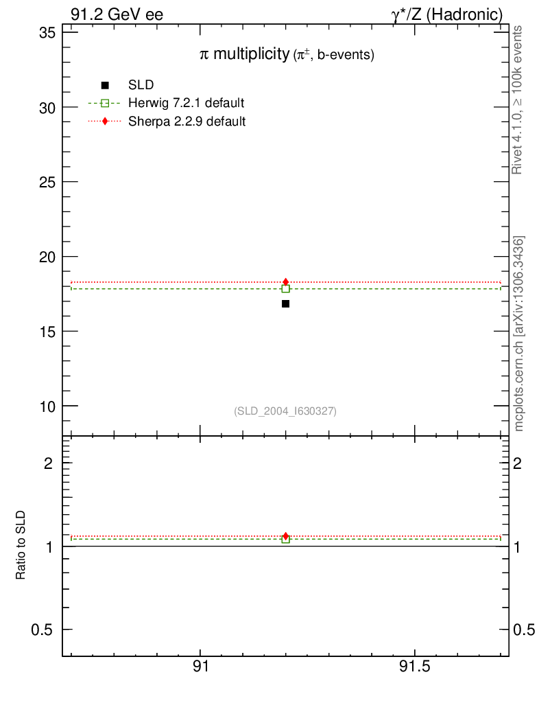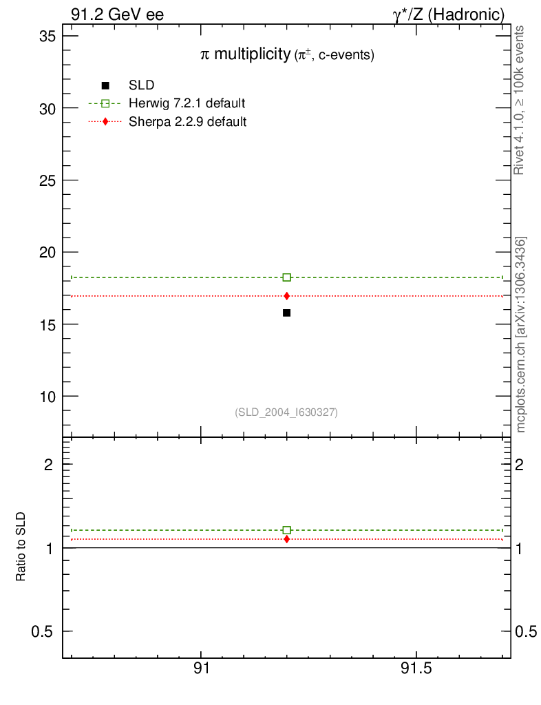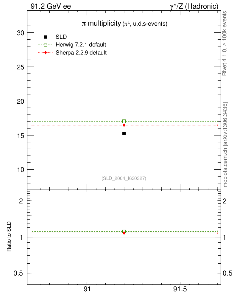 ee : γ*/Z (hadronic) : Identified Particles : π multiplicity