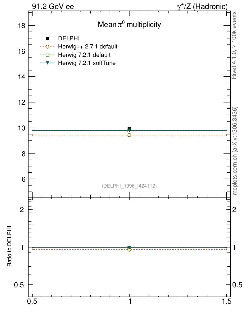 ee : γ*/Z (hadronic) : Identified Particles : π multiplicity