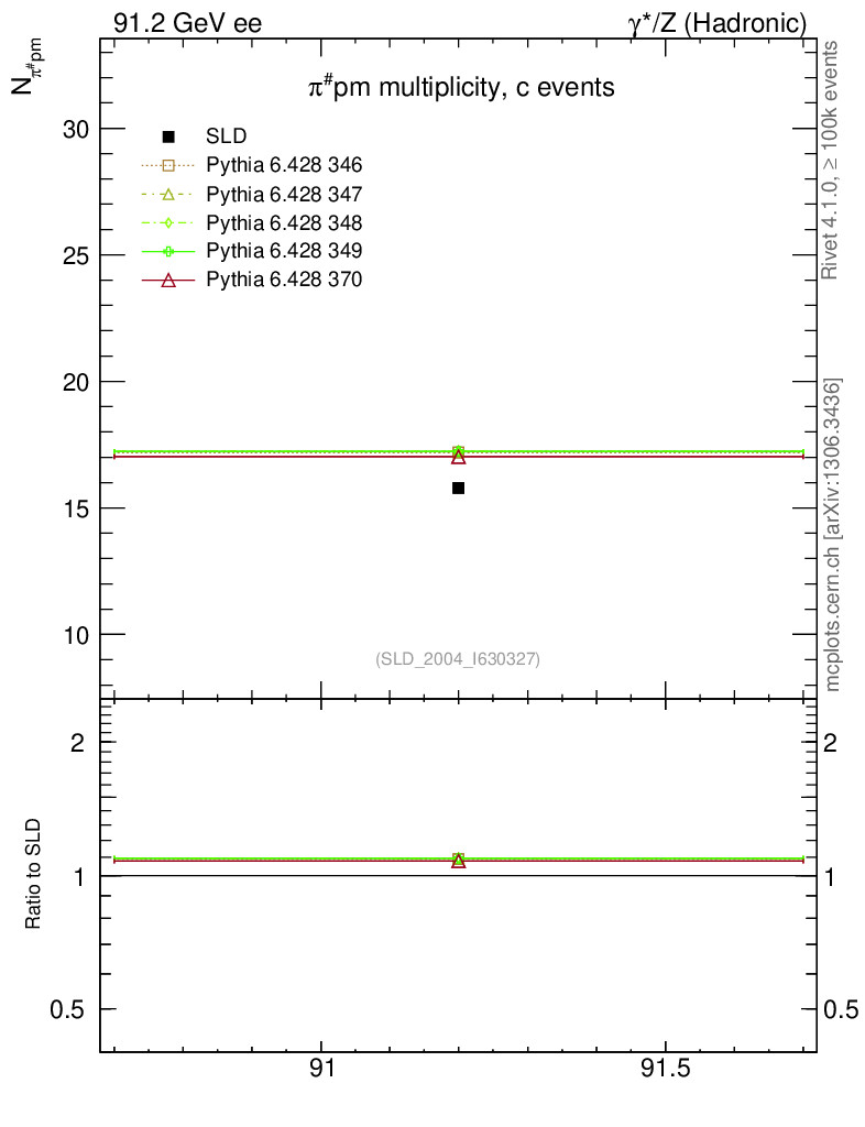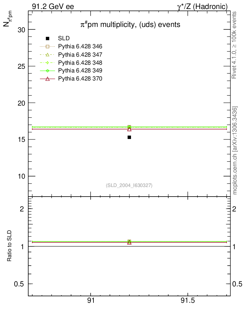 ee : γ*/Z (hadronic) : Identified Particles : π multiplicity