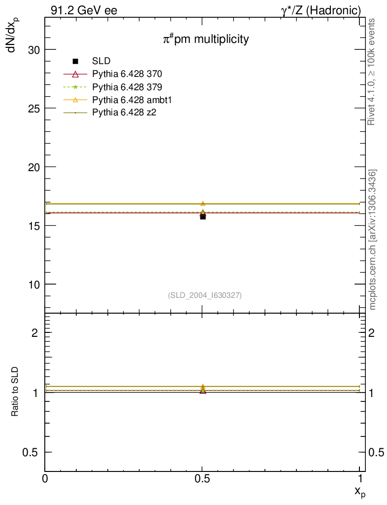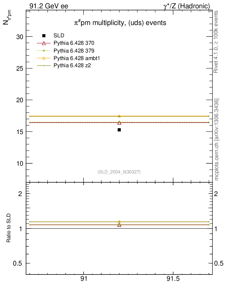 ee : γ*/Z (hadronic) : Identified Particles : π multiplicity