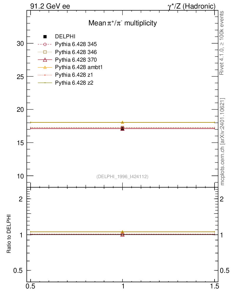ee : γ*/Z (hadronic) : Identified Particles : π multiplicity