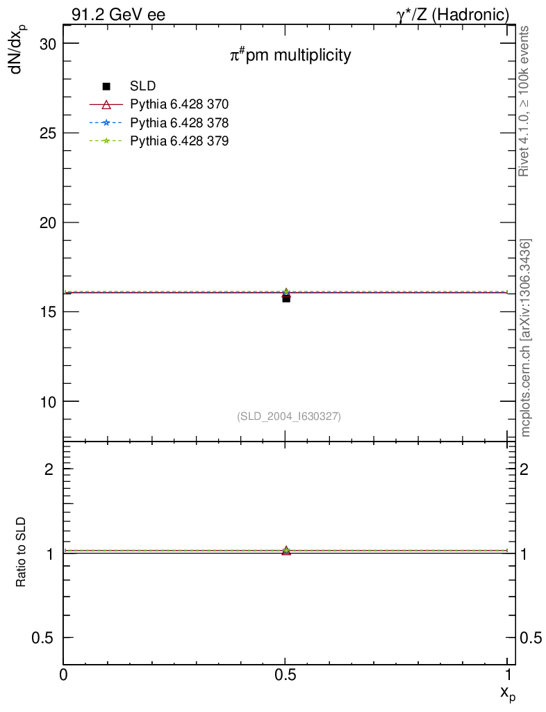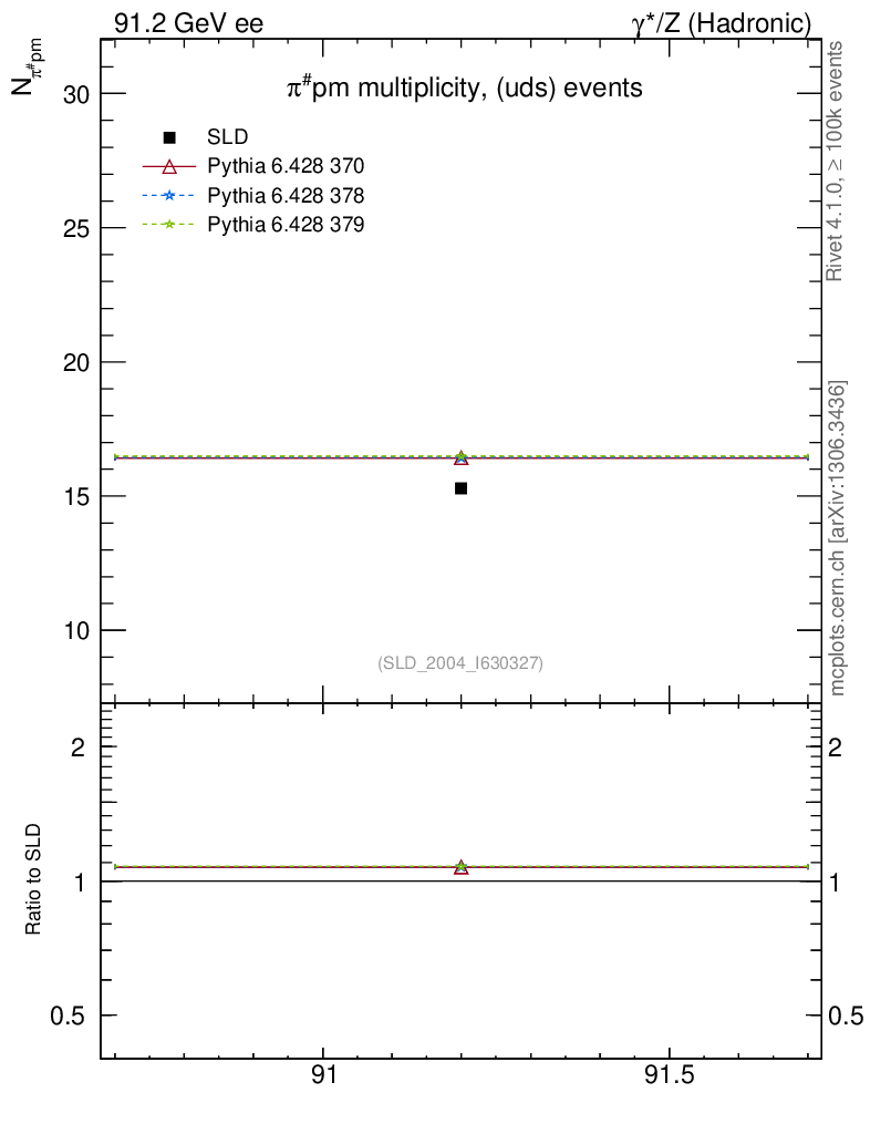 ee : γ*/Z (hadronic) : Identified Particles : π multiplicity