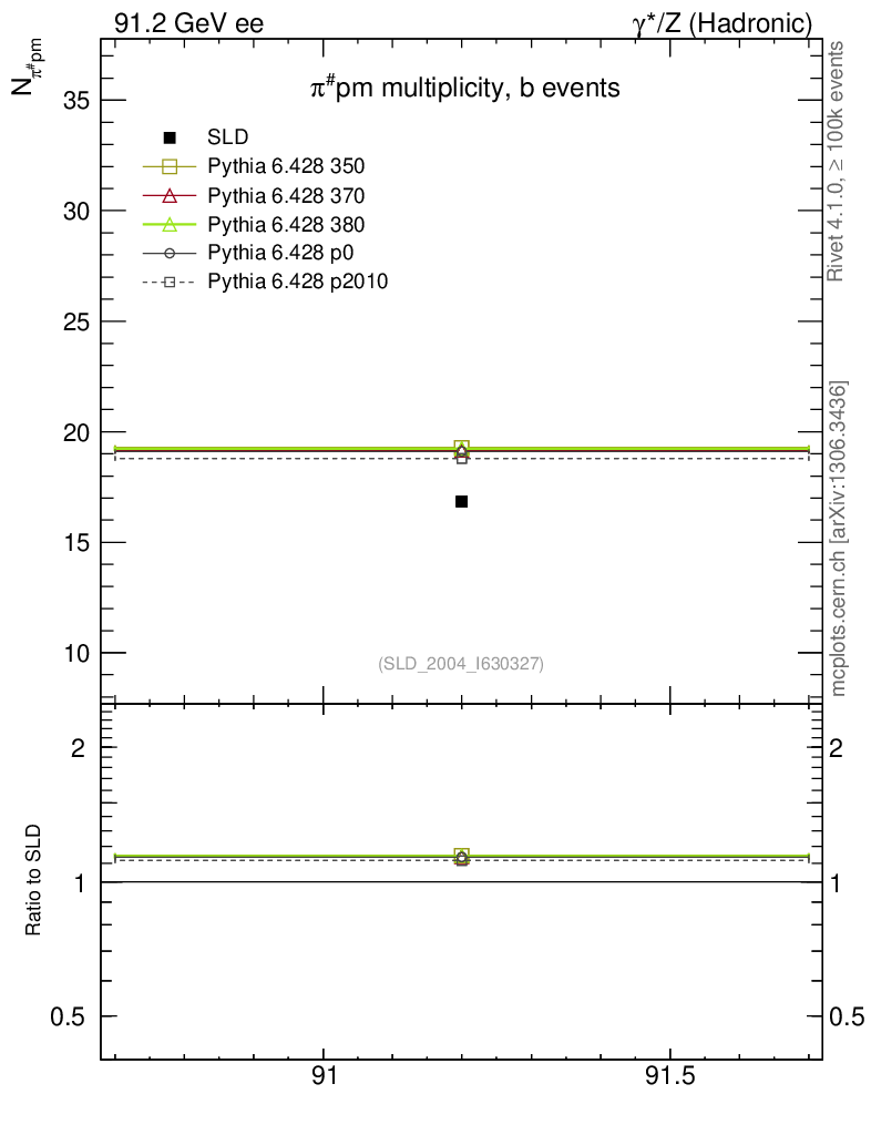 ee : γ*/Z (hadronic) : Identified Particles : π multiplicity