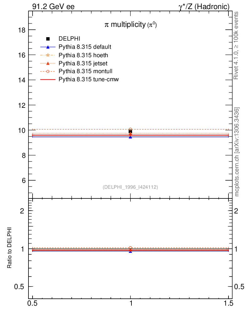 ee : γ*/Z (hadronic) : Identified Particles : π multiplicity