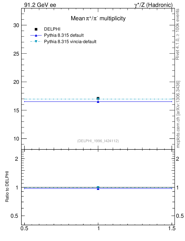 ee : γ*/Z (hadronic) : Identified Particles : π multiplicity