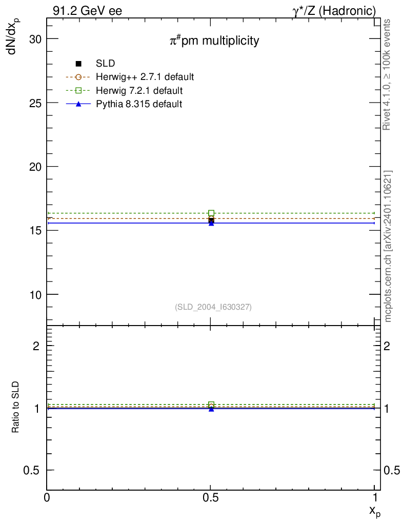 ee : γ*/Z (hadronic) : Identified Particles : π multiplicity