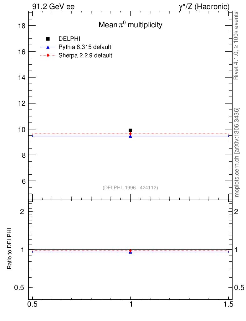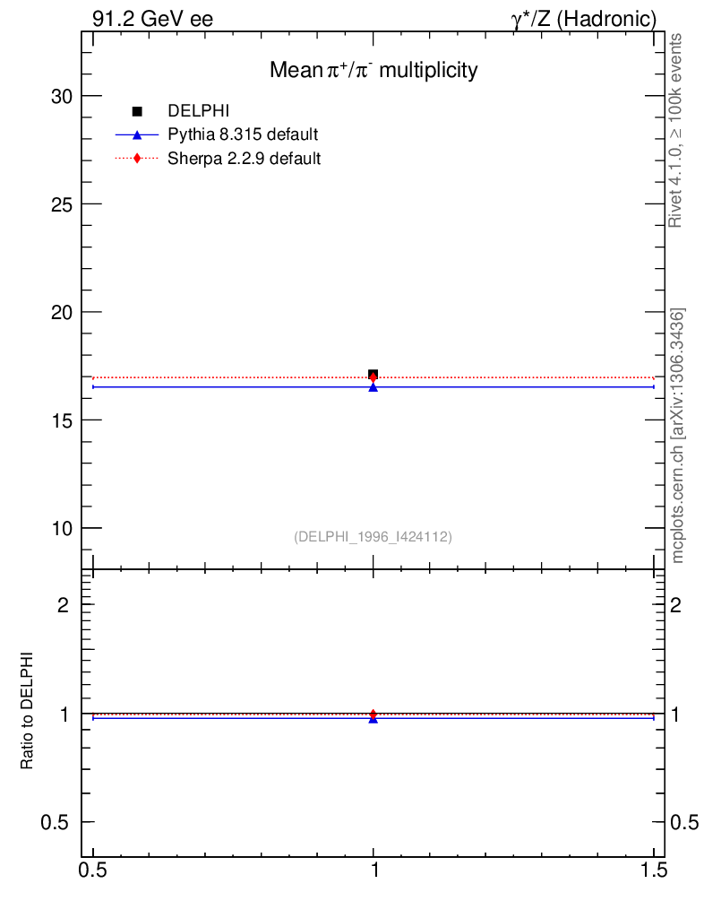 ee : γ*/Z (hadronic) : Identified Particles : π multiplicity