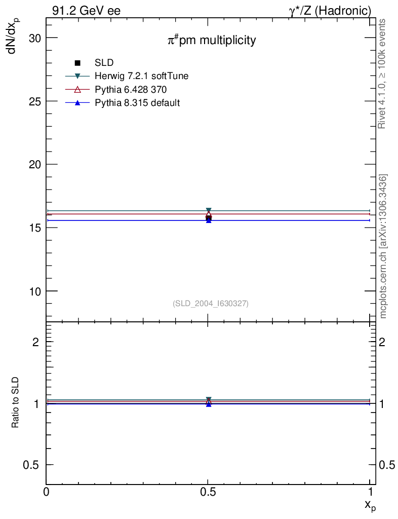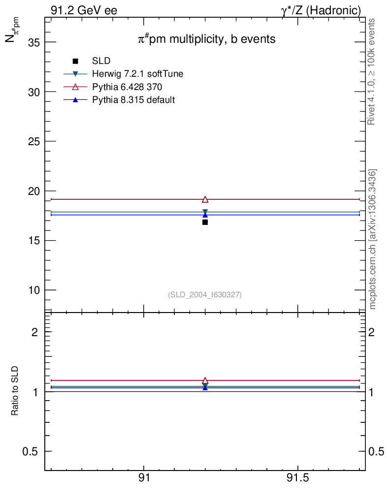ee : γ*/Z (hadronic) : Identified Particles : π multiplicity